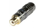Разъем HICON RCA, гнездо на кабель диаметром 6,0 - 8,0 мм, позолоченные контакты под пайку, количество контактов: 2, металлический хромированный корпус, цвет маркировки: синий |