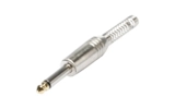 Разъем HICON JACK 6,3 мм (моно) NOISEFREE (бесшумное подключение), штекер на кабель диаметром до 7,0 мм, монолитный позолоченный TIP контакт. контакты под пайку, количество контактов - 2, клеммный кабельный зажим, металлический черный корпус |