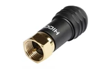 Разъем HICON RCA угловой 90°, штекер на кабель диаметром до 7,0 мм, монолитный пин, позолоченные контакты , центральный контакт с винтовым зажимом, количество контактов 2, металлический цанговый кабельный зажим, металлический черный корпус |