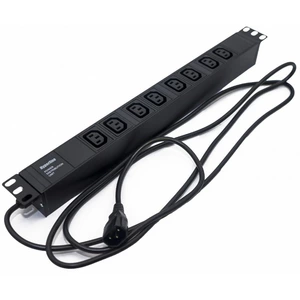 Hyperline SHE19-8IEC-2.5IEC Блок розеток для 19" шкафов, горизонтальный, 8 розеток IEC320 C13, кабель питания 2.5м (3х1.0мм2) с вилкой IEC320 C14 10A, 250В, 482.6x44.4x44.4мм (ШхГхВ), корпус алюминий, черный |