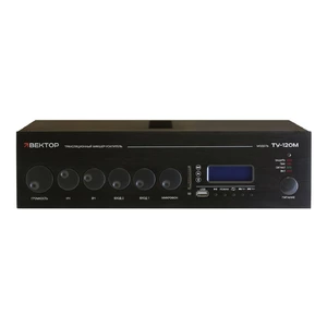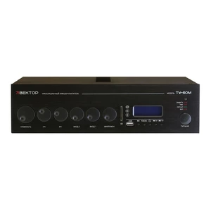 ВЕКТОР ТУ-6060М – шестизонный микшер-усилитель выходной мощностью 60 Вт, который используется для усиления звука и микширования аудиосигналов для трансляции через громкоговоритель. Устройство получило встроенные источники аудиосигнала – FM-тюнер, МР3-плеер, имеются разъемы для карт памяти. При необходимости к микшеру-усилителю подключается другое устройство – можно транслировать файлы с ноутбука, микрофона, ТВ и т.п.