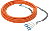 Тип: Многомодовый оптоволоконный кабель конструкции Breakout с четырьмя волокнами 62,5/125 мкм, оконцованными симплексными коннекторами LC SFF. |