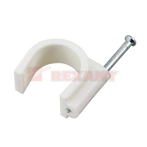 Кабельная скоба под винт REXANT 20 мм, белая, упаковка 50 шт.