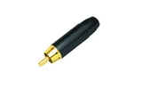 Кабельный разъем RCA, , черный металлический корпус с цветовой маркировкой красного цвета, резиновый хвостовик красного цвета, контакты покрытие - золото, под пайку, на кабель диаметром до 8 мм |