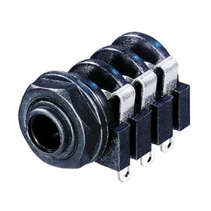 Neutrik NJ3FP6C-BТип: Разъем JACK 1/4" стерео панельный, гнездо, пайка провода, тип-D, с фиксатором, черный, позолоченные контакты.... -
