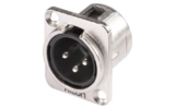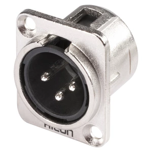 Разъем HICON XLR3, штекер на панель, никелированные контакты под пайку, количество контактов - 3, металлический никелированный корпус, фланец D-типа |
