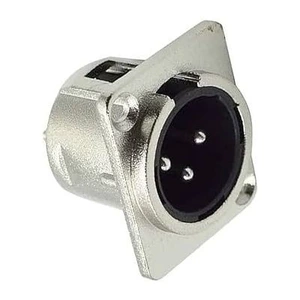 Панельный разъем XLR, 3-х контактный , А-серия, фланец D-типа, металлический никелированный корпус, контакты - покрытие серебро, под пайку |