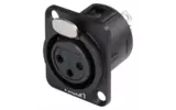 Разъем HICON XLR3 пылезащищенный и водостойкий (IP54), гнездо на панель, позолоченные контакты под пайку, количество контактов: 3, металлический черный корпус, фланец D-типа |