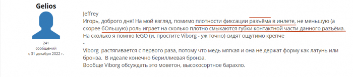 Я даже думал что-то подложить туда, или герметикам пустоты залить, но не стал портить. Хотя есть вариант немного выгнуть концы, тогда ему некуда будет растягиваться, но тогда тяжело будет вставлять в инлет и что-нибудь точно треснет со временем.Короче продал это барахло, а позолоченные отправил обратно, звук отвратительный у обоих.