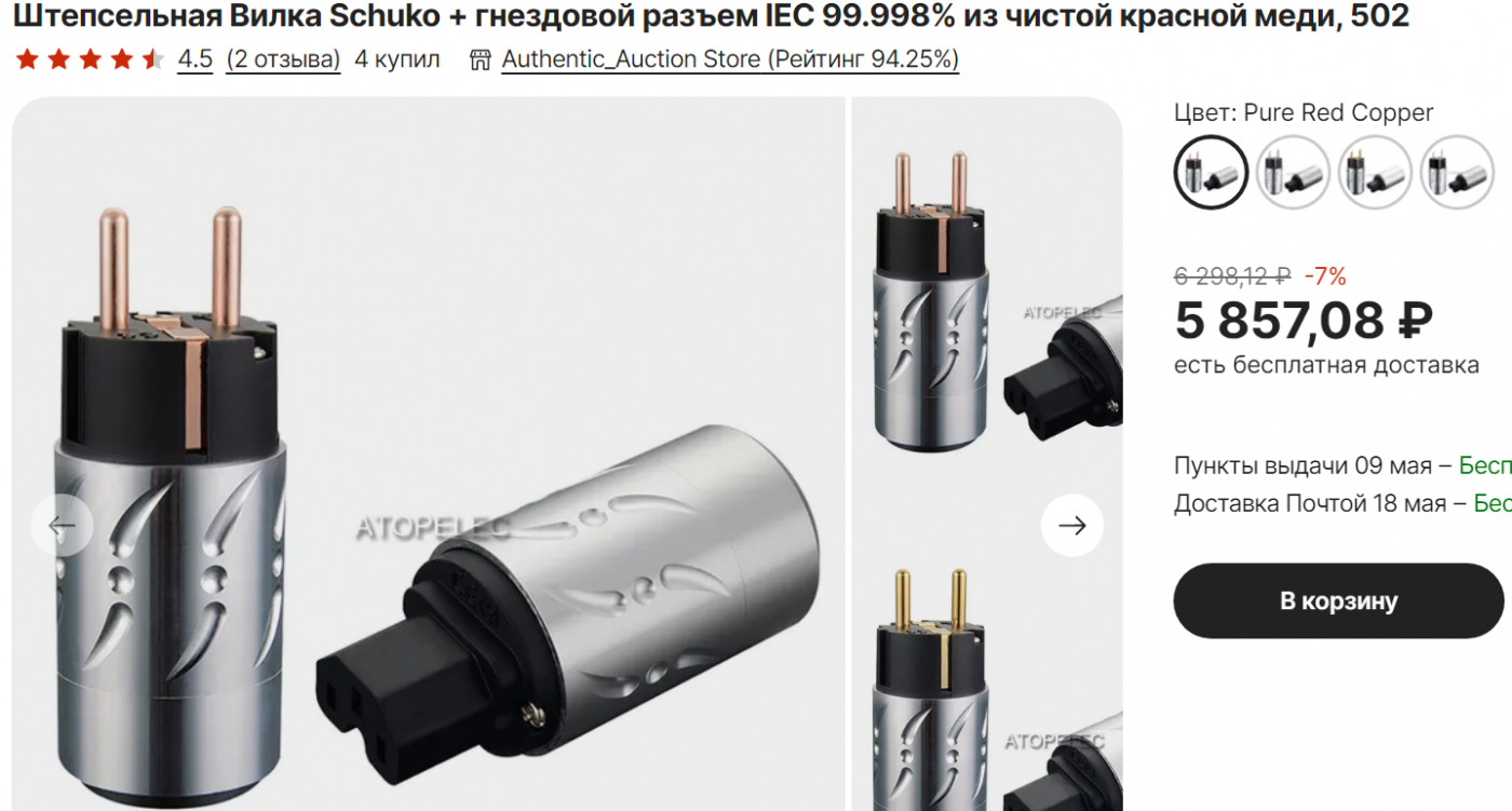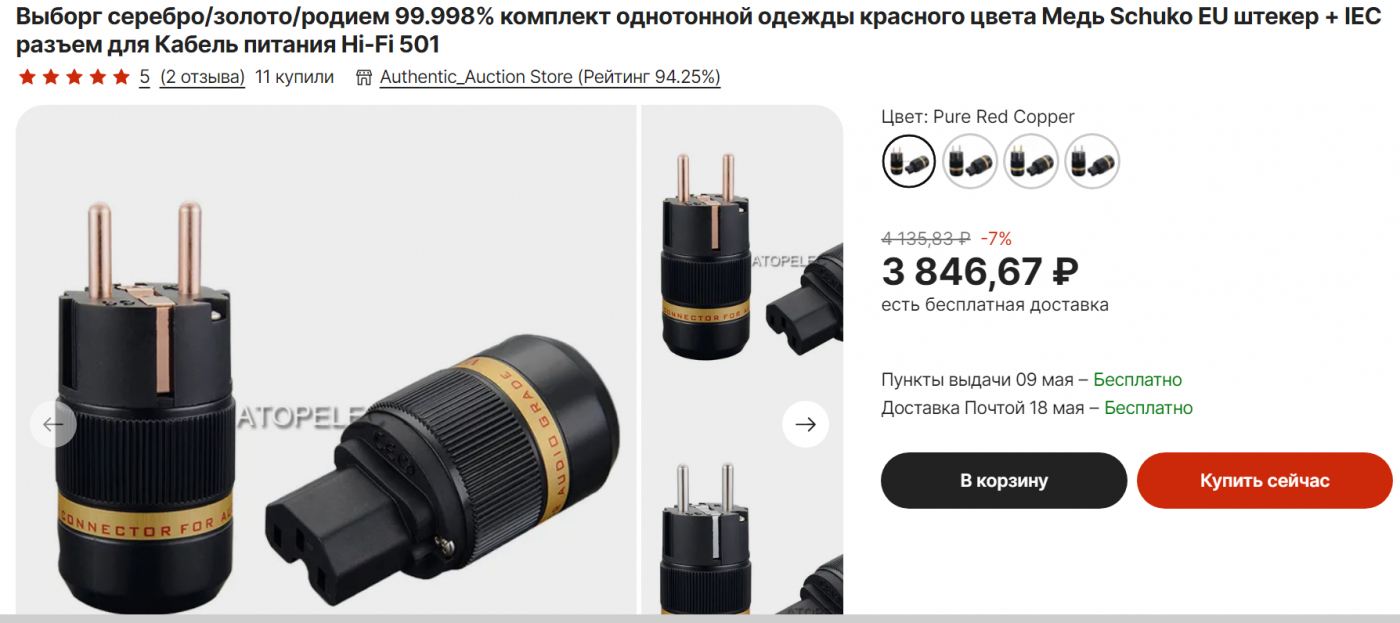 просто не может быть вилка за 1800 лучше любой японской, даже самой простой..Все эти коннекторы делаются как раз в расчёте на "аудиофилов" в кавычках, у которых нет средств на приличные кабели и коннекторы. Лучше уж взять латунный Ватгейт, чем это непойми что. Со временем подкопить и купить более высокого уровня коннекторы по своему вкусу.