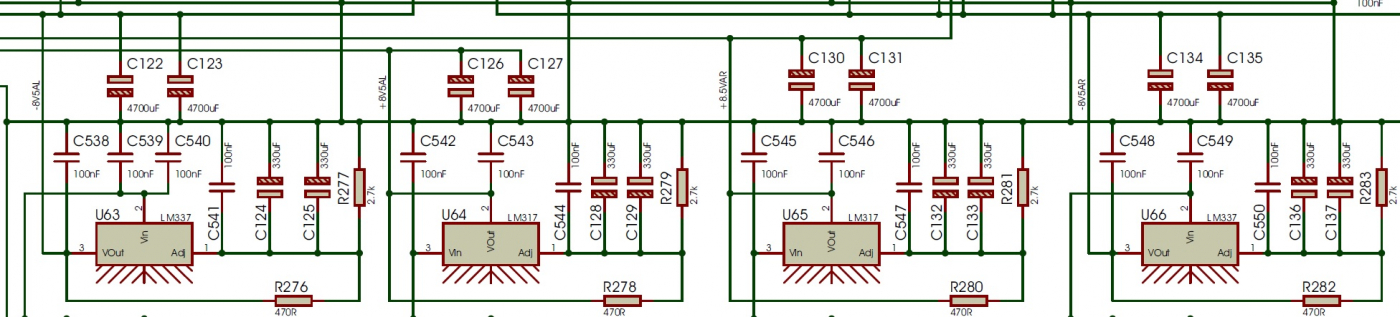 На нижний резистор r281 тоже навешали конских емкостей, для лм317 хватит 33-47мкф хорошего рубикона или кемет-тантал.