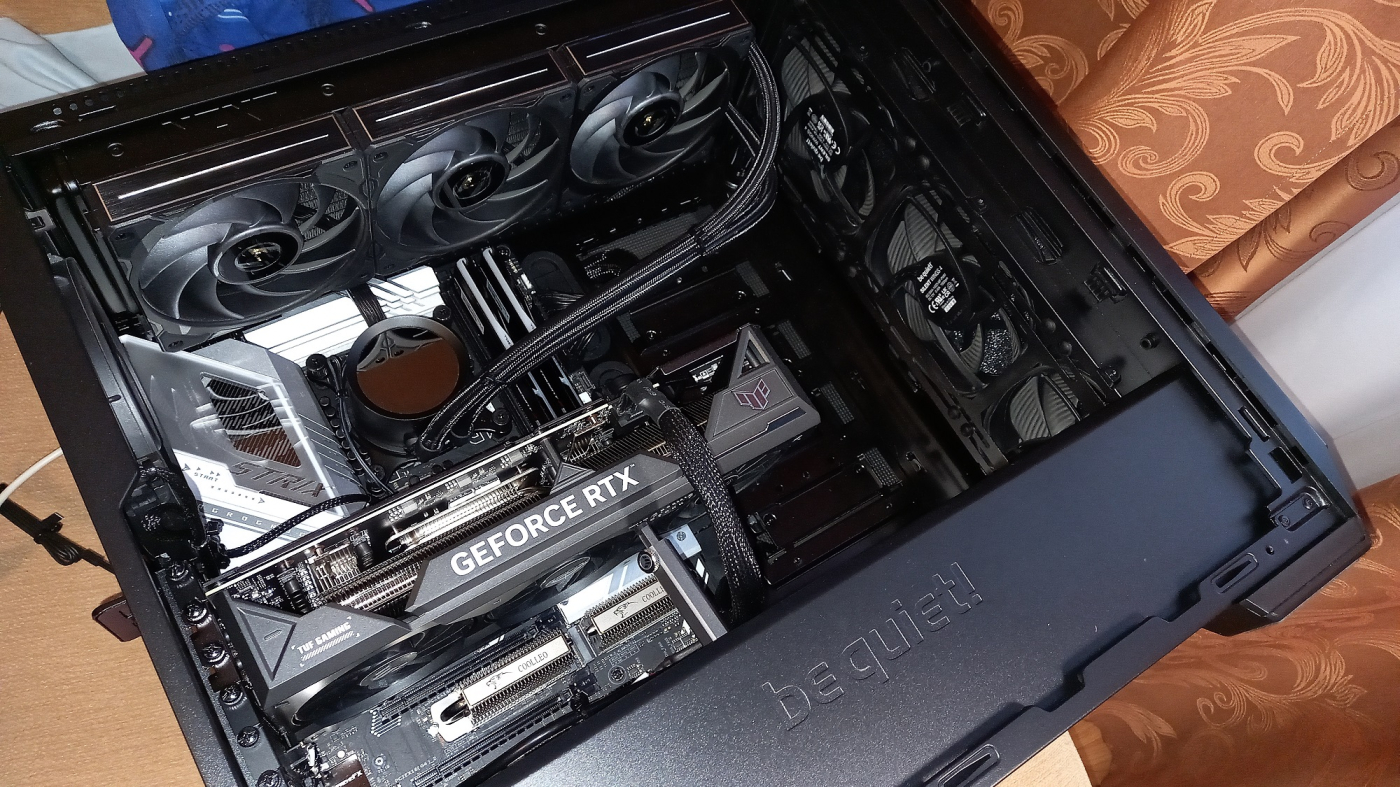 Собрал я себе новый мощный компьютер на базе последней платформы - Cote i5 14600KF, чипсете Z-790, 64 Gb ОУ и видеокарте GeForce RTX 4070 Ti SUPER TUF GAMING OC 16G. Охлаждает это хозяйство четыре 140 и один 120 вентиляторы на продуве и с водяным охлаждением форм-фактор 360 с тремя 120 вентиляторами...