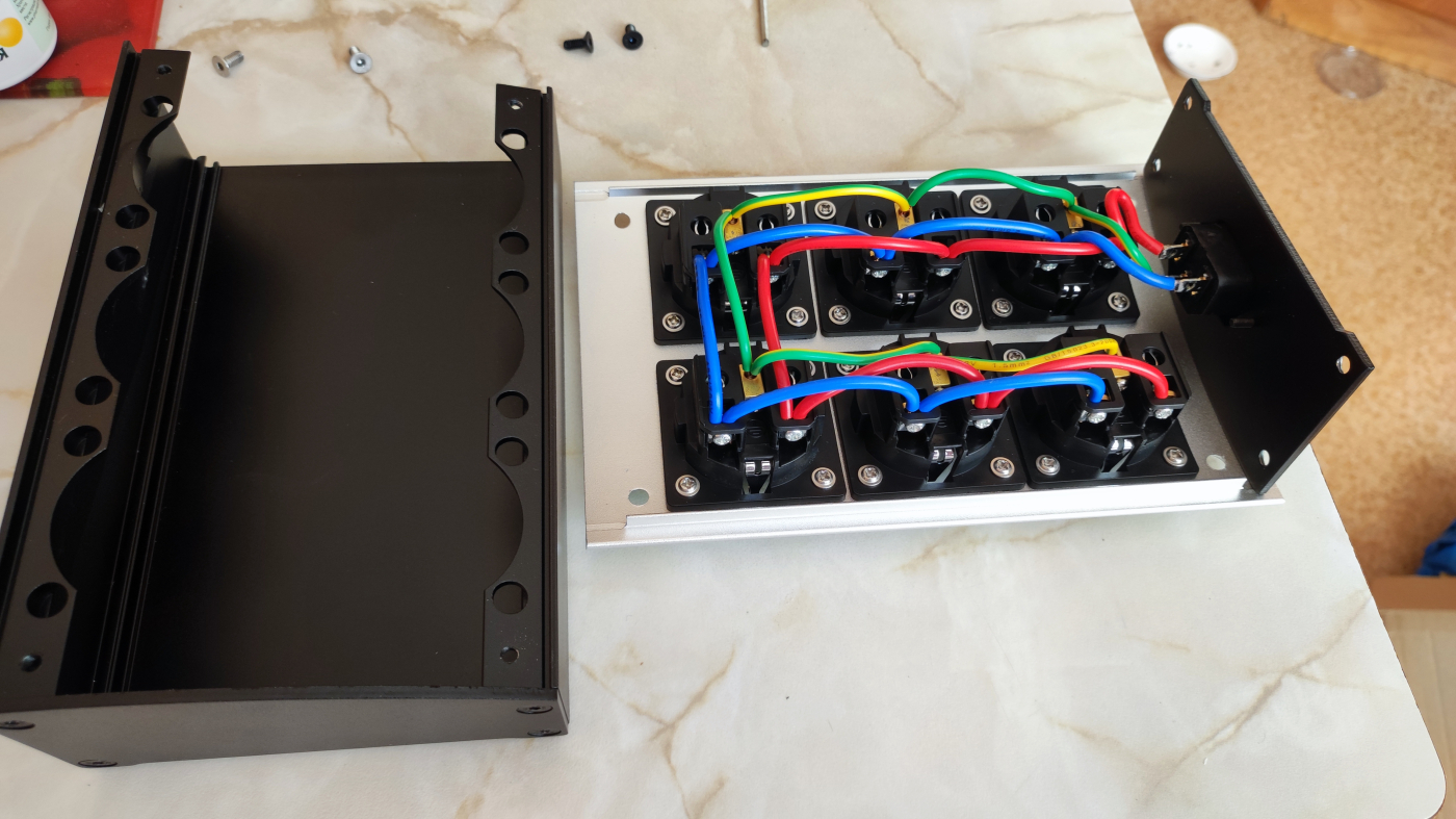 В связи с прибавлением аппаратов, возник дефицит розеток. Приходилось периодически лазить за стойку, отключая аналоговые потребители, вертак и фоник, и наоборот. Заказал у китайсов реплику распреда Фурутек.