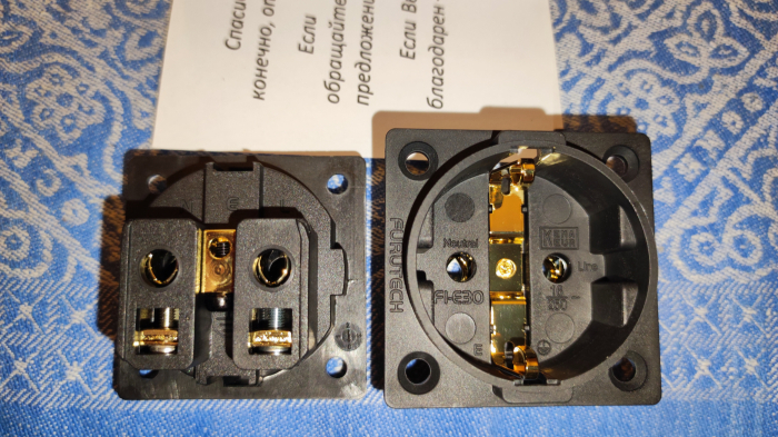 Кстати. Забыл сказать. Что Furutech FI - e30 (G) это обычная дешевая латунь. Поэтому я могу их рекомендовать только для подключения чайника, ну максимум телевизора. А вот Furutech FI-E30 NCF (R) уже идет чистая медь.