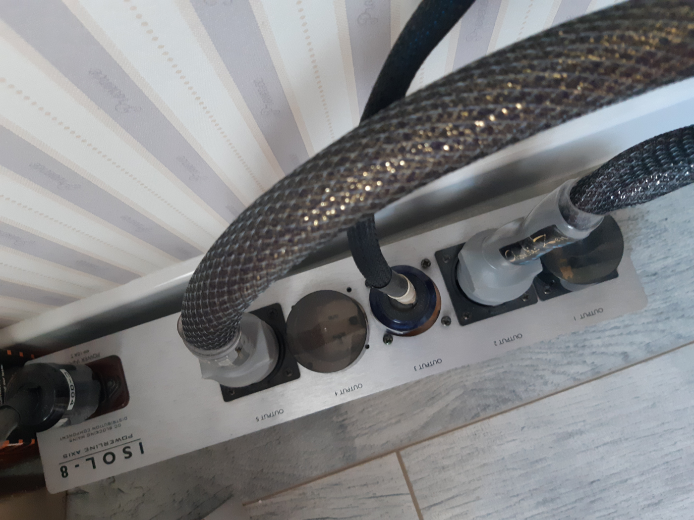 сейчас переключил так: в первые две от инлета (подписаны for pre-amp) подключил оба источника, во второй от инлета ряд (подписан For power amp) - усилитель (он туда изначально и был включен). В третьем ряду оставил ТВ, четвертый ряд - пустой.