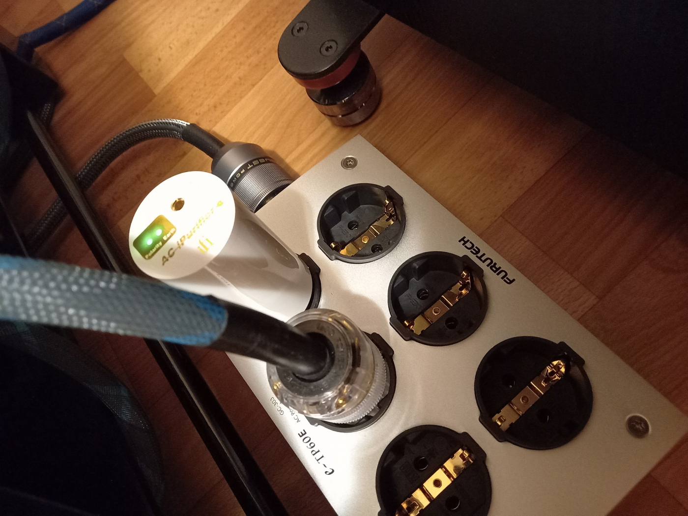 Breeze, хотите поговорить на данную тему или есть что то более стоящее для внимания?) А никто и не спорит, что хороший фильтр, а лучше регенератор питания, стоят весьма прилично. Ну и что из того... Порой правильно выполненная выделенная линия с качественной защитой в ней (не бытовой), сопоставима с хорошим фильтром питания. А в своей системе я использую еще недорогой, но эффективный фильтр iFi Audio Accessory AC iPurifier (EU). Год как он установлен в систему и ни разу с тех пор проблем в звучании системы я не наблюдал, как это было до его приобретения. И ухудшения от его влияния на звук так же ни разу не замечал, так как принцип его работы не в разрез (последовательно) с напряжением питания сети, а в параллель. Споров и рассуждений на его счет было немало, но он у меня есть и за свои слова изложенные в этом посте отвечаю полностью, но никому его и не навязываю. Шумоподавление у него не такое и малое, порядка в 40 дБ, но устанавливать в общую сеть, с другими розетками смысла нет, так же как использовать его без заземления - работать не будет, а шумов может и добавить. Так что, кто захочет его приобрести, обратите внимание на эти нюансы. Ну, и еще раз покажу...