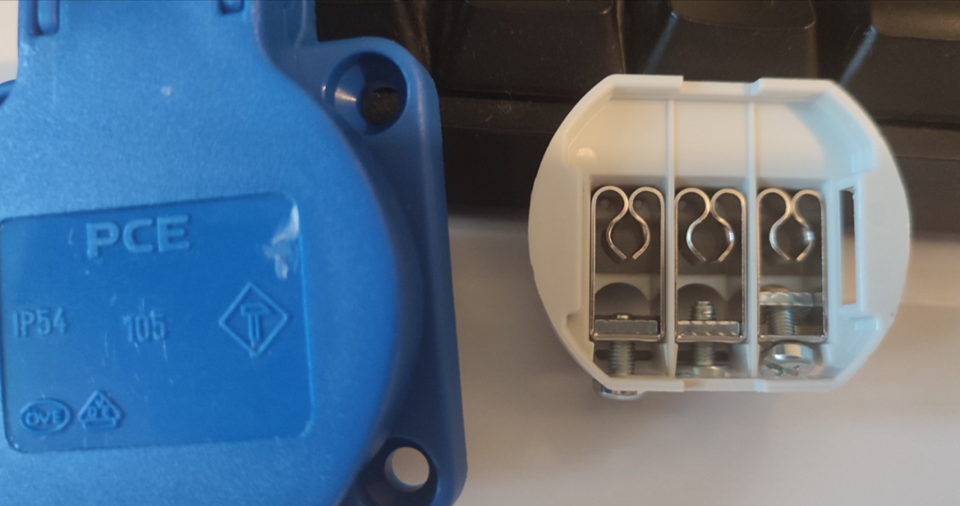-Если вы разберете свои розетки PCE c крышкой, то там так же будут три контакта. По центру - земля, штырь находится со стороны крышки и вставляется в этот контакт.