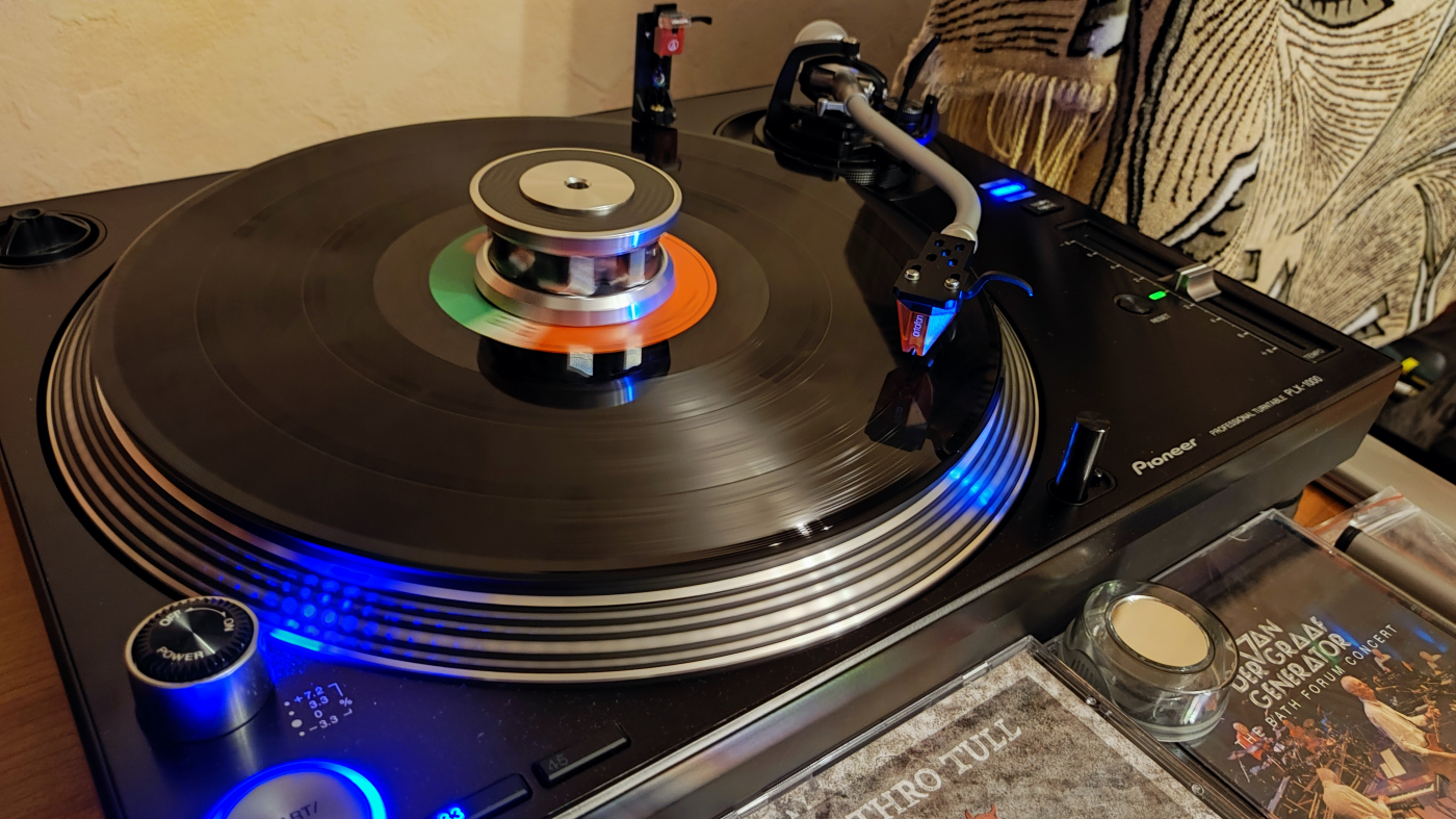 Мат сейчас 6мм техниковский RGS0010A, вытащил его на "этих ваших ебеях" откуда-то из Сингапура. Но не потому, что якобы "посолидней". Штатный 4мм очень даже неплохой. Но с учетом моих предыдущих картриджей AT VM95e, VM540ml высотой 17мм было невозможно корректно выставить VTA. Тонкий получился для диапазона заводской регулировки высоты тонарма от 0 до +6мм в этом Пионере 1000. Приходилось опускать тонарм вниз до упора, так получалось на максимально возможное расстояние по шкале ниже нуля. На мой взгляд это единственный косячок этого отличного недорогого проигрывателя. Сейчас стоит голова Ортофон 2м Бронза, 540я на подхвате. Конечно же ранее пробовал и другие маты, пробковые, к примеру, и простые и в смеси с каучуком, как отдельно, так и комби со штатным. Оядовские 1мм бутиловый BR One под и над штатного и "вольфрамовый" BR-12 отдельно. По звуку все эти разные маты и их комбинации всё как-то было не то. Субъективно штатный резиновый пионеровский мат мне казался более предпочтительным, несмотря на немного неправильный VTA (тонарм несколько колом по отношению к пластинке). С технарским матом все эти проблемы были закрыты.