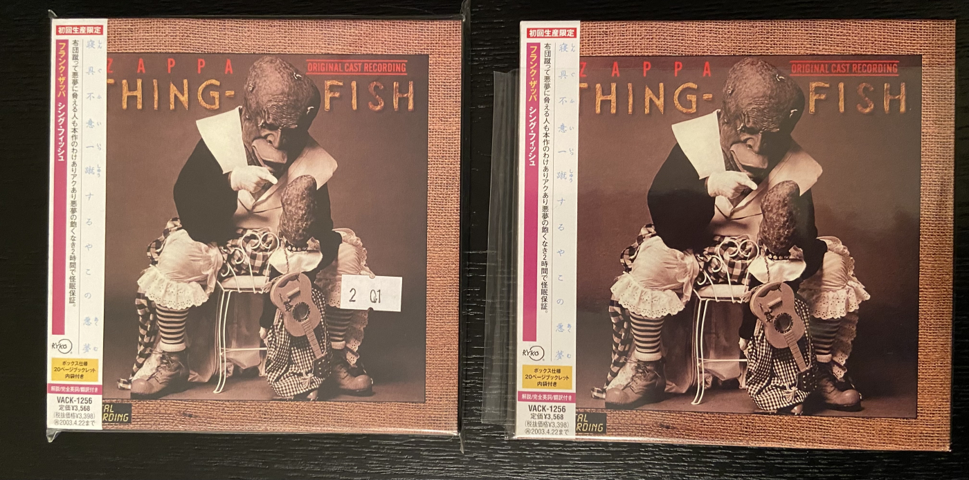 Оригинальный виниловый микс Thing-Fish был доступен на компакт-дисках лишь в 1987 г. в Великобритании на лейбле EMI. Все остальные CD-релизы содержат модификации, правки, переэквализацию и некоторые незначительные ремиксы (наиболее существенное отличие - комментарий Джонни "Гитара" Уотсона во время песни "He's So Gay" - было реализовано не сразу). Эта новая версия была первоначально выпущена на CD фирмой Rykodisc и вместе с большей частью каталога Заппы была переиздана в 1995 году также фирмой Rykodisc.