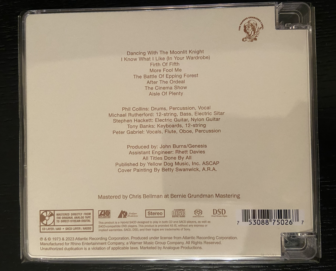 Mastered directly from the original analog tape to Direct-Stream-Digital by Chris Bellman at Bernie Grundman Mastering