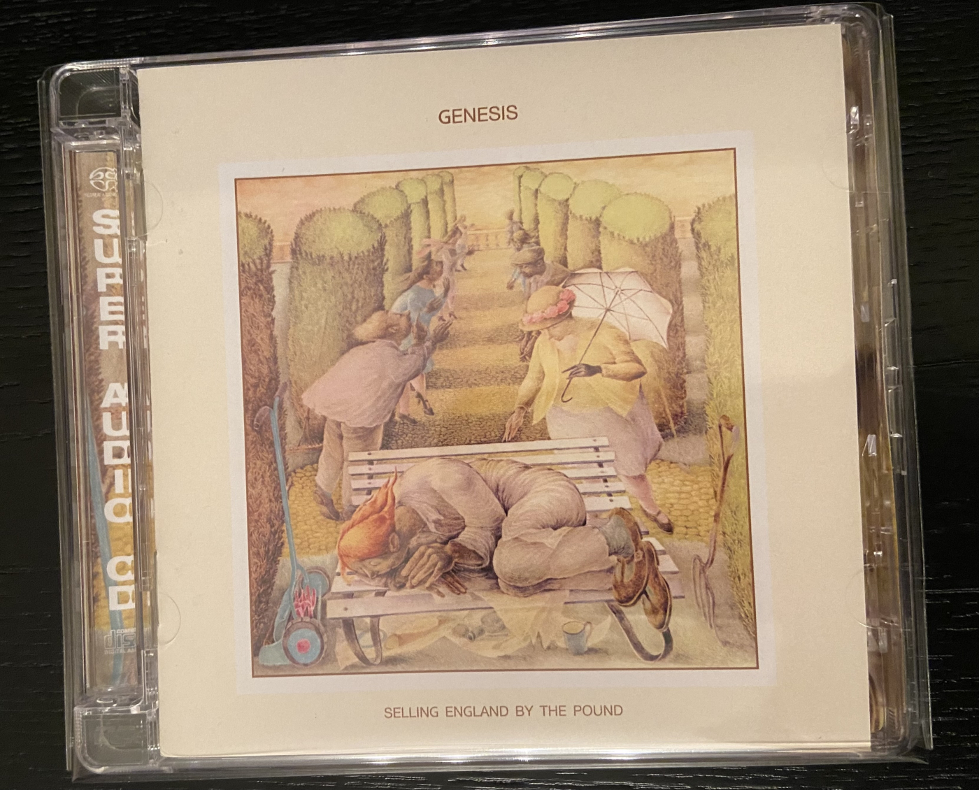 Итого, купил я в июне весь каталог на CD (кроме двух концертников Genesis Live и Seconds Out) в издании 1999 года на mini LP Toshiba-EMI Japan (ремастеринг 1994 года, известный как The Definitive Edition и скорректированный по сравнению с 80-ми + по дыр-дыр зеленый). Поначалу вообще не зашло, но у меня был подавленный эмоциональный период в то время, при этом задним умом понимал, что музыка сложная, требует концентрации внимания. Потом вслушался и присел. Привстал через месяц и пришлось покупать весь каталог на SACD/DVD-A 2007 года, также на Toshiba, но уже не только ремастеры, но и ремиксы Ника Дэвиса.