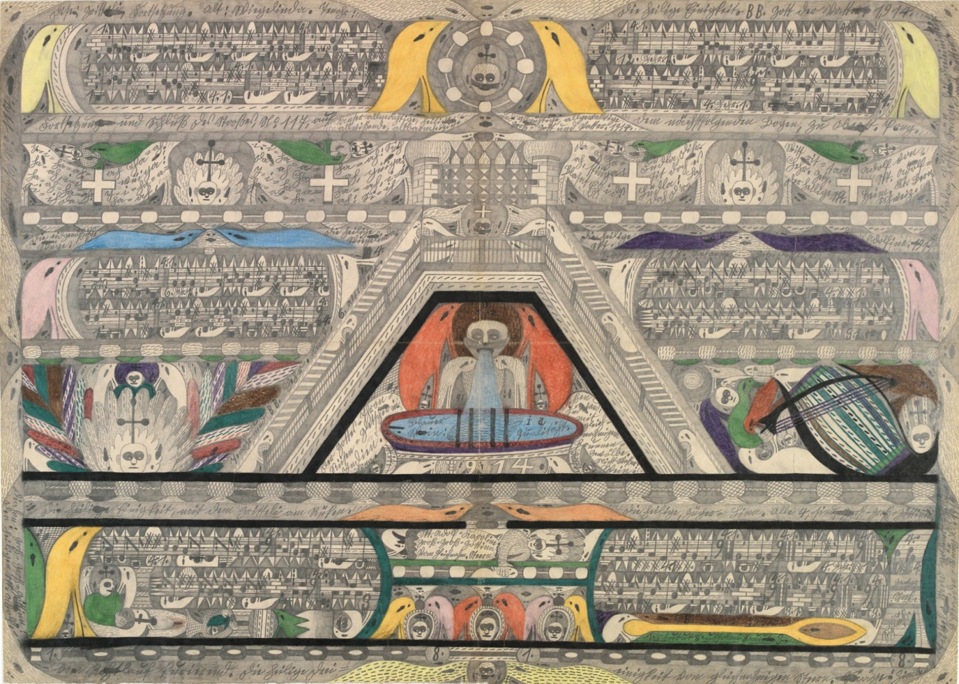 Адольф Вёльфли сегодня считается одним из самых выдающихся художников начала XX века, чьи работы выставляются по всему миру. Однако рисовать он начал лишь в возрасте тридцати пяти лет, когда, будучи пациентом психиатрической больницы Вальдау под Берном, стал писателем, композитором и художником. Его миссией было переосмысление не только собственной жизни, но и мира. Поэтому 25 000 страниц, которые он написал для публикации, он посвятил созданию впечатляющего детства и славного будущего.