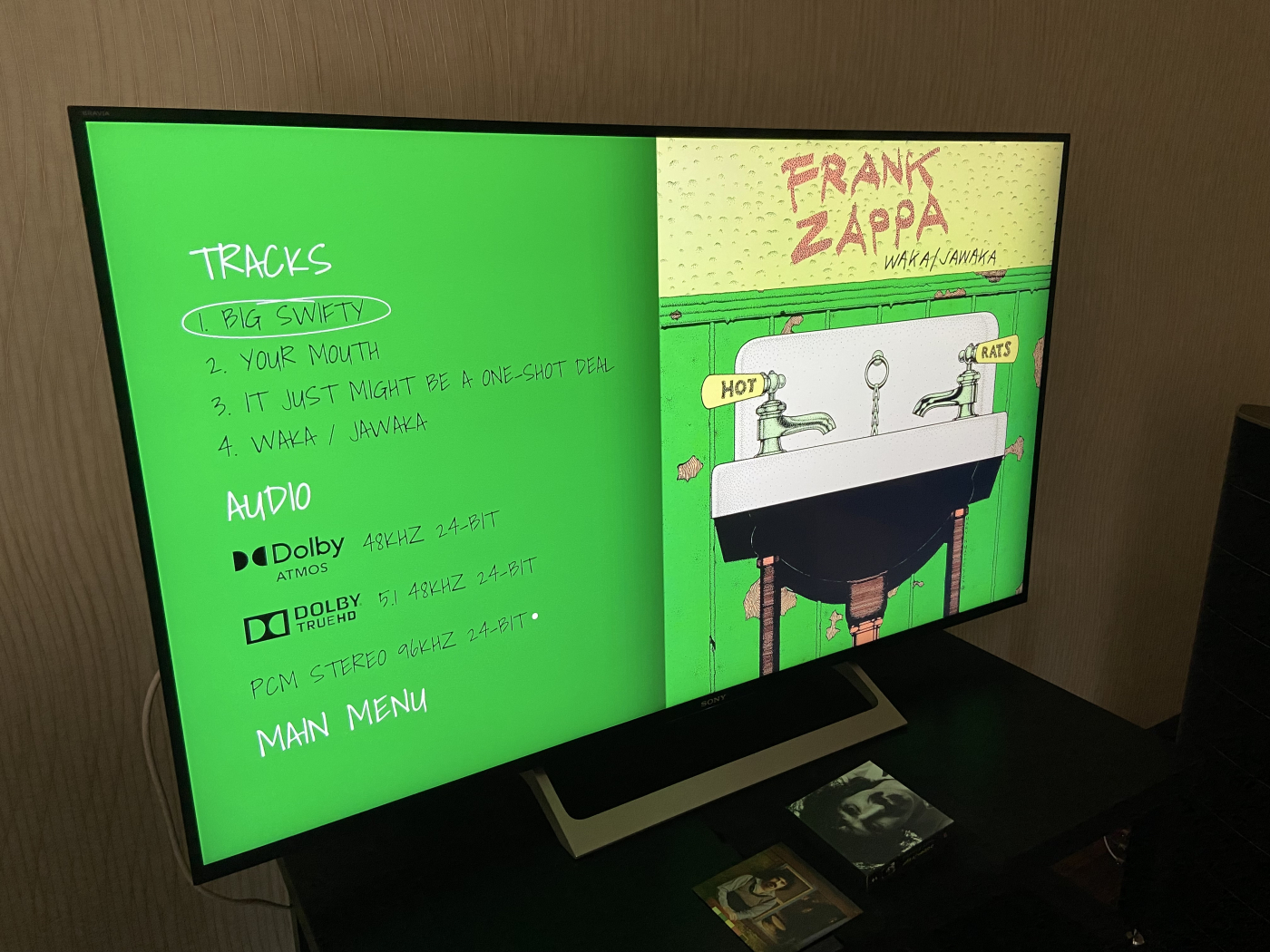 Самое интересно — самый лучший звук на Waka/Wazoo на дорожке PCM Stereo 24/96, переключал на Dolby Atmos и Dolby True HD — звук ровно в ДВА РАЗА тише, чем на стерео слое. Установки плеера: режим Mixed Down Stereo при проигрывании мульти-канала, a DRC (dynamic range control) стоит на OFF (эта опция режет НЧ для саба). Какой-то идиотизм.