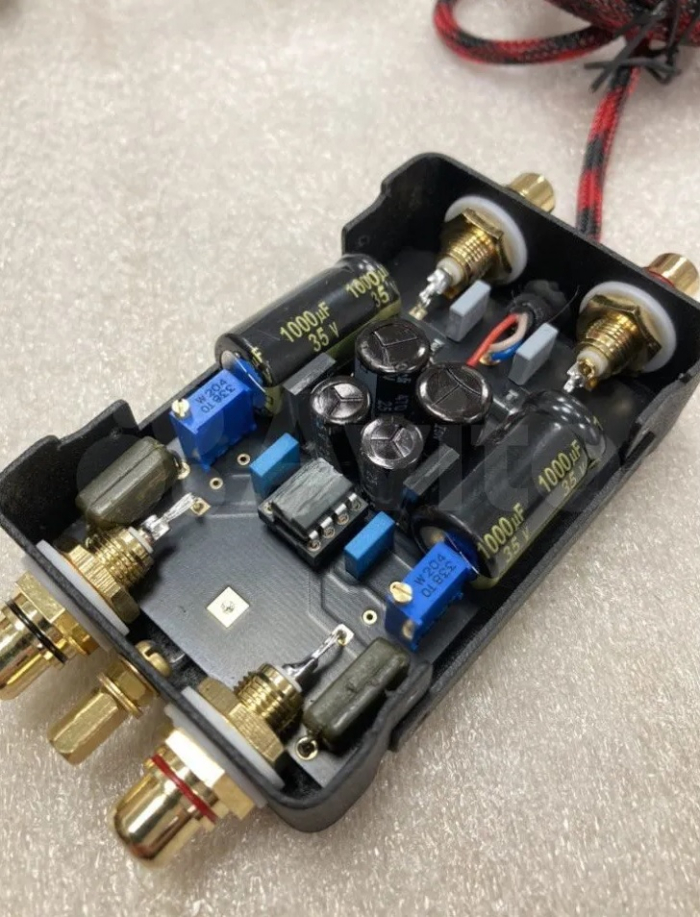Мне конечно жаль потраченные Ваши средства, хУбых., но это так называемое фоном-корректором вовсе не оно, а обычный линейный усилитель. Вообще имеете представление о чем идет речь, почему такой усилитель называется корректором, я про RIAA коррекцию? На входе ЭТОГО устройства нет рокот-фильтров, и не вижу ни одной цепочки корректировки кривой анти-RIAA с целью ее перегиба на частотах АЧХ 50,05, 500,5 и 2122,1 Гц в процессе обработки уже самим фоно-корректором. Она, анти, вносится непосредственно в саму запись винилового диска. Цель ее избежать появление нежелательных резонансов в катушках картриджа звукоснимателя при механическом считывании колебаний в звуковой дорожке. Да, вижу электролитические конденсаторы значительных емкостей, они способны как то компенсировать низкие частоты, да только не получите при этом полноценную их реализацию. Одно, это чудо усилит сам рокот тонарма, а второе - выдаст такие НЧ, когда диффузоры НЧ динамиков будут выпрыгивать из своей корзины, а вместо НЧ будет только ухающий ветер. Кроме того, далее по "списку", велика вероятность словить сибилянты, особенно на не качественных дисках и дешевых картриджах. Вообще, эта тема весьма занимательная и обширная - механическое воспроизведение, но вполне познаваемая, если внимательно в нее вникнуть. Мое упрощенное изложение, надеюсь, поможет ее всосать в Ваш мозг. Человек, может быть Вы неплохой, но вот техническими навыками не обладаете от слова совсем.