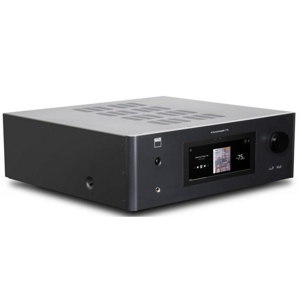 AV-ресивер NAD T 778, получил конфигурацию оконечных усилителей 9 x 100 Вт. Причем речь идет о гибридных цифровых усилителях NAD, дебютировавших именно в этом изделии. Важнейшая особенность NAD T 778 — модульная конструкция, то есть в корпусе предусмотрены два слота MDC с возможностью замены пользователем установленных в них компонентов. «NAD твердо верит, что есть много людей, для которых музыка всегда будет на первом месте, — заявил директор компании по технологиям, Грег Стидсен (Greg Stidsen). — T 778 придется по вкусу самым требовательным аудио- и видеофилам, а его система MDC поможет защитить свои инвестиции на долгие годы». По видео ресивер способен пропускать 4K/Ultra HD, он соответствует платформе Blu-ray высокого разрешения. Модель сможет обрабатывать конфигурации Dolby Atmos, DTS:X и DTS Master Audio, поддерживая конфигурации домашнего кинотеатра вплоть до 7.1.4 каналов. При этом T 778 оснащен автоматической коррекцией помещения Dirac Live. Кроме того, он поддерживает декодирование MQA на всех своих цифровых входах. Аппарат сможет обеспечить беспроводную мультирумную потоковую передачу посредством Apple AirPlay 2. На борту также установлен модуль Bluetooth с поддержкой aptX HD. Ресивер оснащен новым усовершенствованным сенсорным экраном, обеспечивающим простое и, как утверждается, интуитивно понятное управление с передней панели. Он также сертифицирован на соответствие основным системам управления. Интеграция устройства в комплексы домашнего кинотеатра и умного дома возможна и с использованием последовательного порта RS232. Также предусмотрен инфракрасный вход датчика сигналов ДУ с функцией обучения и вход/выход триггера дистанционного запуска. При этом T 778 собран в низкопрофильном корпусе для монтажа в стойку 3U.
