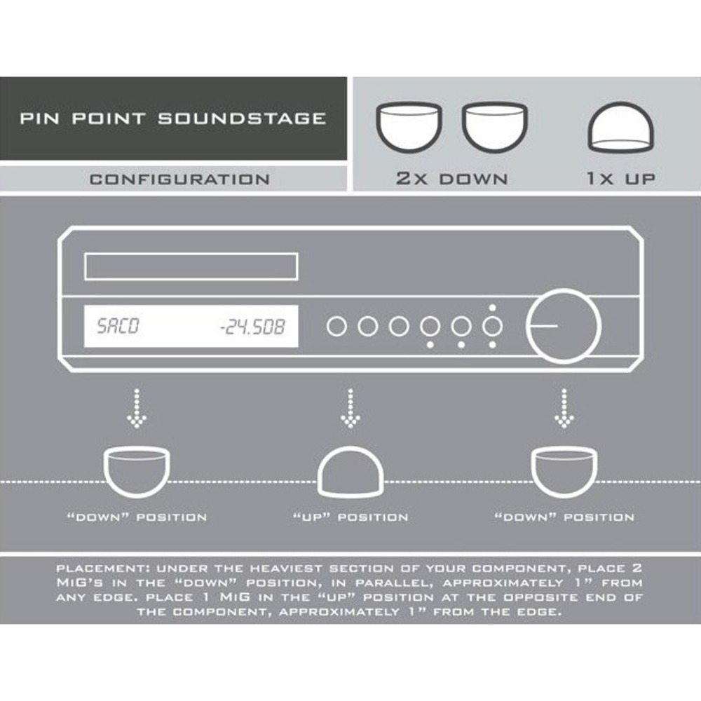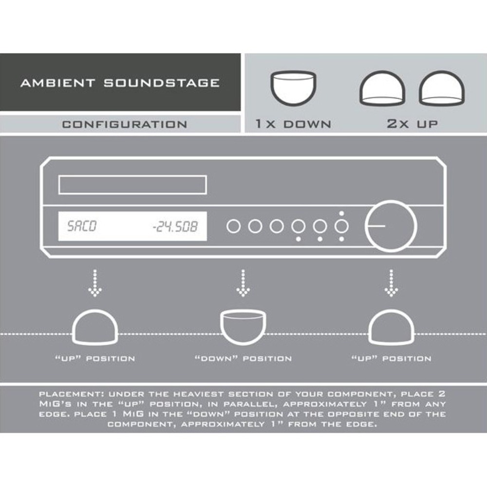 Мне тут один достаточно искушённый человек с дорогой системой очень тепло отзывался об этих абсорберах.  Утверждал, что они более эффективные для звучания компонентов, чем любые конусы!  Есть несколько разных вариантов установки их под компонентами, от этого заметно меняется звучание. То есть, в отличие от конусов, можно подбирать под свой вкус, что очень заманчиво...