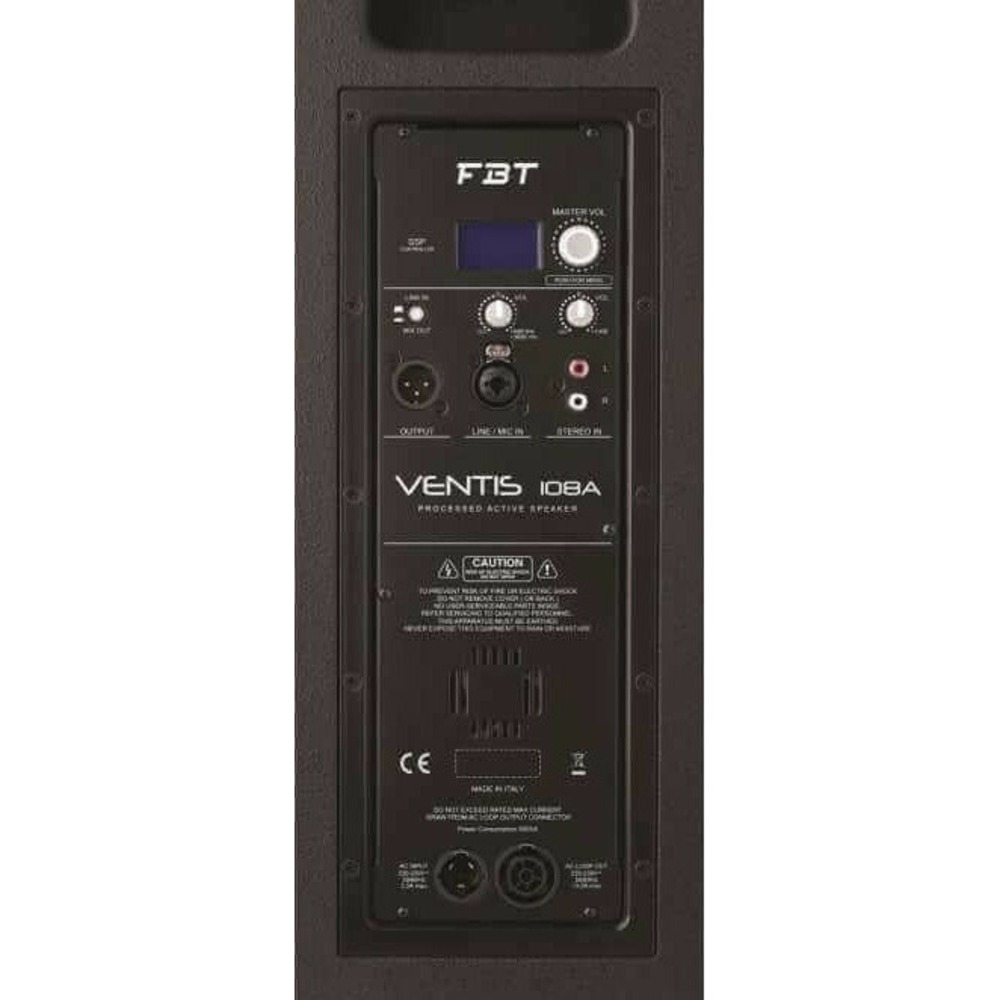 FBT Ventis 108A - качественный и надежный вариант звукоусилительного оборудования для клубов, дискотек, кафе, баров и т.д. Прочный, устойчивый к царапинам корпус из 15 мм фанеры, четыре точки подвеса М5 и 35 мм "стакан", делают установку АС удобной для пользователей, а отличный звук - обеспечивают высококлассные комплектующие и тех.показатели системы. Активная (Bi-amp) 2-х полосная акустическая система FBT VENTIS 108A с DSP процессором и вращаемым в горизонтальном и вертикальном положении рупором. Портативная акустика с хорошими техническими характеристиками: частотным диапазоном от 65 до 20000 Гц, встроенными усилителями класса D (700 Вт RMS (Max) на НЧ, 200 Вт RMS (Max) на ВЧ), высококачественными B&C неодимовыми ВЧ и НЧ катушками, дисперсией 80`х 50`.