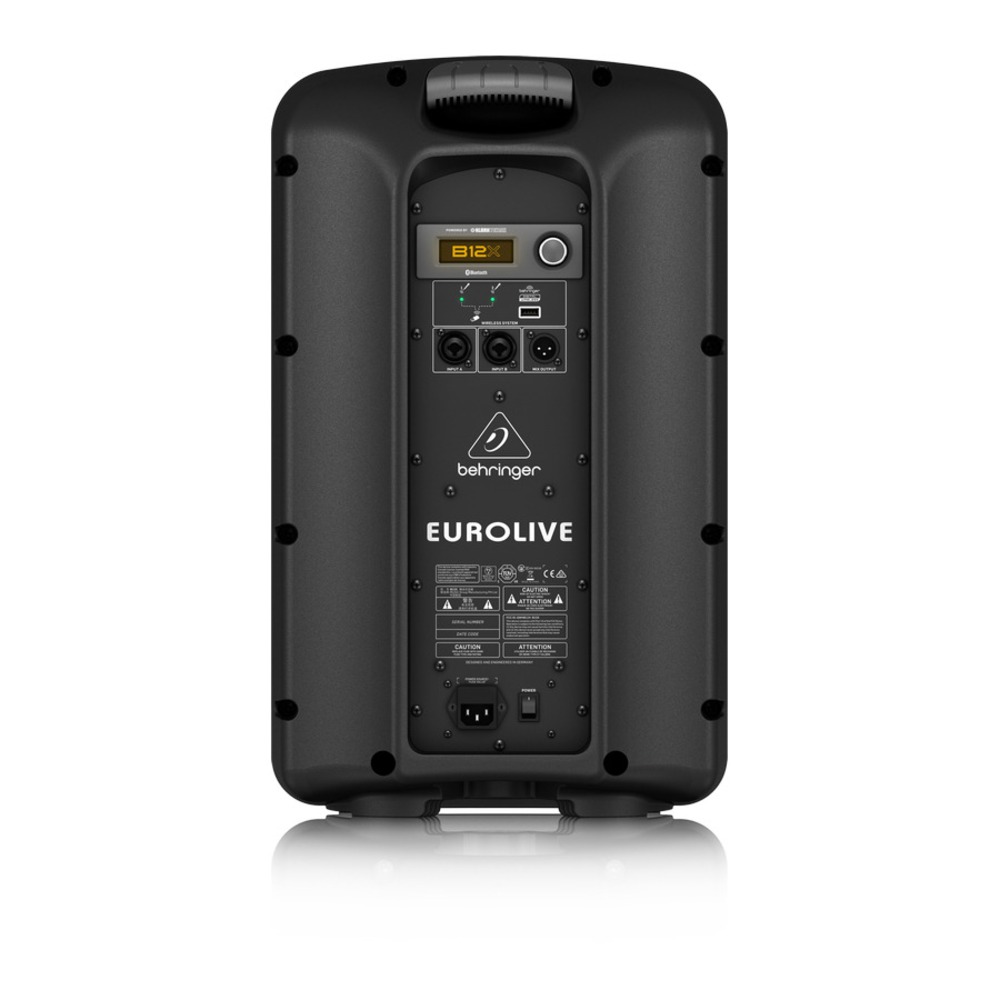 BEHRINGER B12X имеет двухполосную конструкцию, встроенный усилитель 1000 Вт, 24-битный DSP процессор от Klark Teknik, на борту акустической системы 3-канальный цифровой микшер с двумя входами XLR-1/4" и порт USB, к которому можно подключить приёмник беспроводной системы ULM-серии.