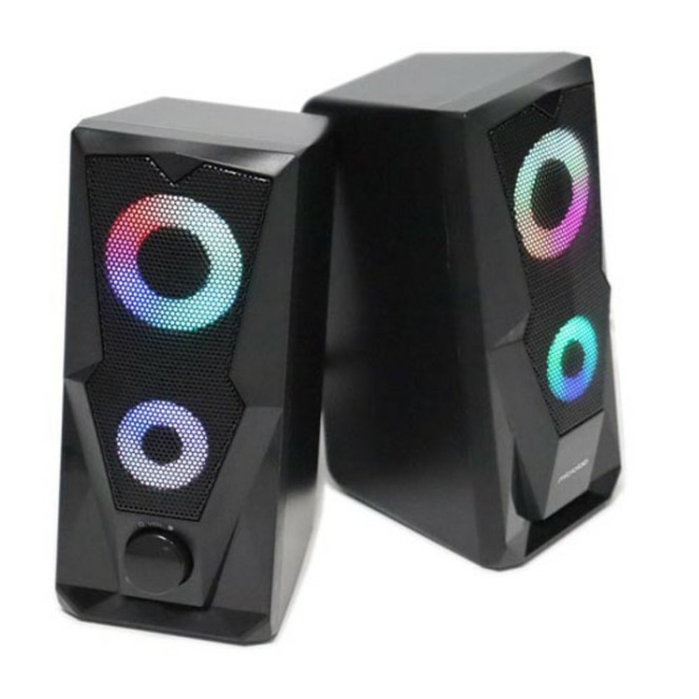 Акустика B27 подключается к ноутбуку или компьютеру при помощи USB и не требует дополнительного питания от электросети. Обладая небольшими габаритами, колонки не занимают много места на рабочем столе и позволяют брать их с собой в поездки. Современный дизайн сателлитов и яркая семицветная подсветка делает акустику эффектным украшением пространства.