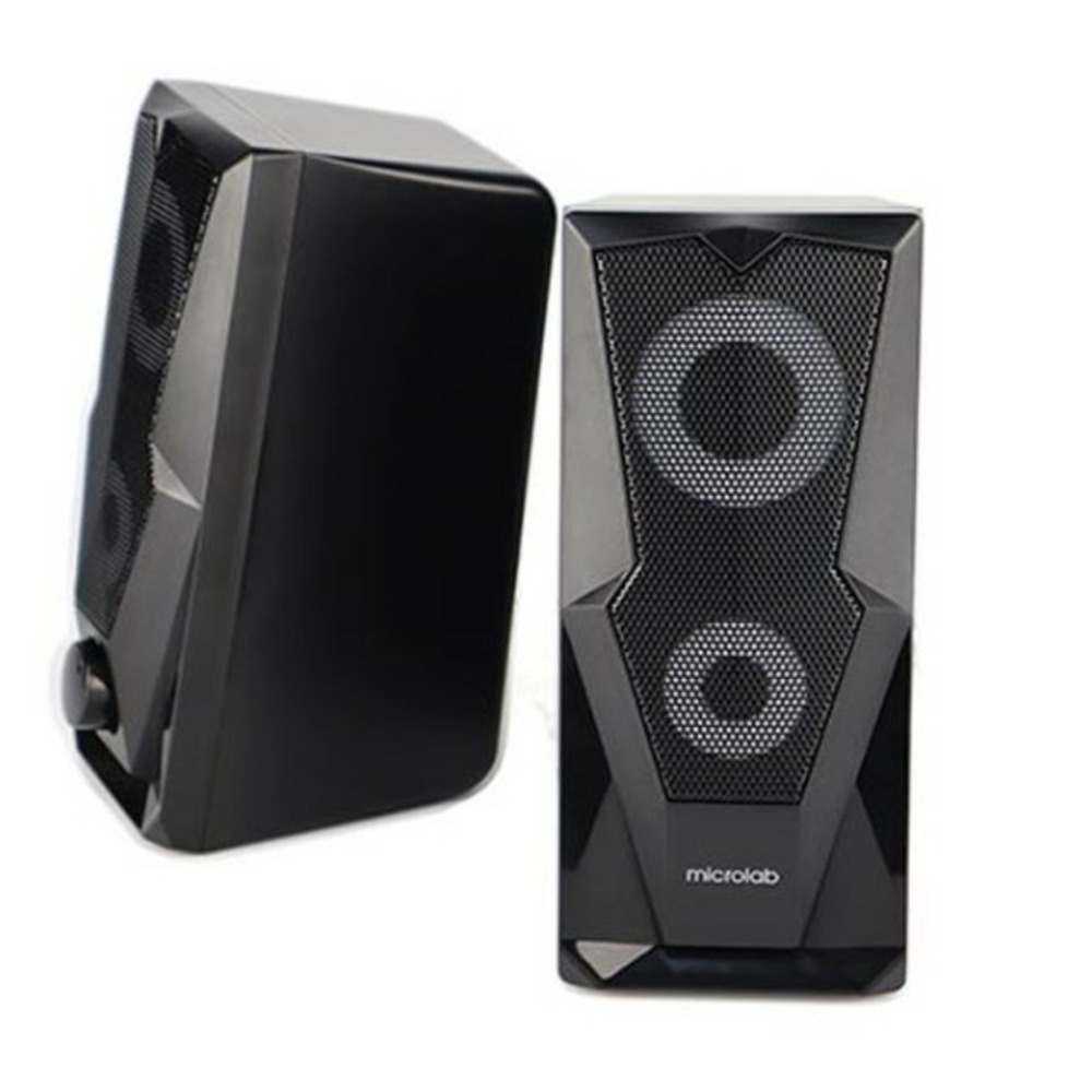Акустика относится к компактному формату 2.0 и имеет общую мощность 10 Вт, что позволяет организовать объемное и насыщенное звучание при просмотре видеороликов, прослушивании музыкальных треков или в играх. Корпуса колонок имеют наклоненную форму и направляют звук непосредственно к слушателю.
