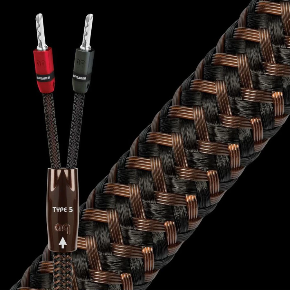 Модель акустического кабеля Audioquest Type 5, предлагает еще более низкий уровень искажений и низкий уровень шума. По сути, это модель Type 4, в которой используется более совершенный метал для проводников, при этом они расположены немного дальше друг от друга, что снижает взаимодействие между соседними проводниками на 35%.