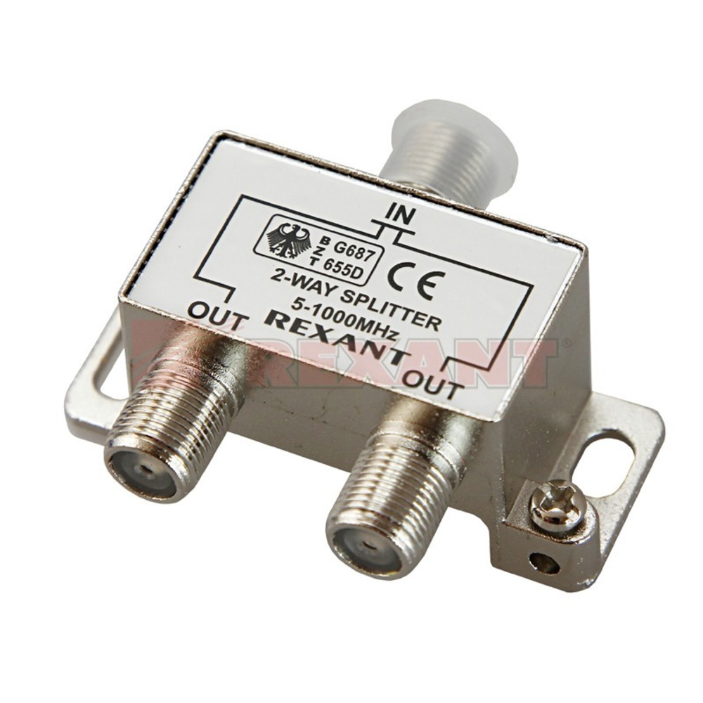 Телевизионный делитель это удобное средство для разделения сигнала на несколько равных частей. Антенные делители, также называемые телевизионные сплиттеры ,часто используются когда требуется подключить один телевизионный кабель, идущий от антенны, сразу к нескольким телевизорам. Особенно это актуально в многокомнатных квартирах или многокомнатных загородных домах. Делитель имеет один вход под F разъем и два выхода, также под F разъемы. Сигнал, подающийся на вход делителя, делится на две равные части и передается на выходы. Для подключения кабелей используются стандартные F-разъемы. Полоса пропускания делителя от 5 до 1000МГц, эти частоты используются для стандартного эфирного телевидения. Качественно изготовленный ТВ сплиттер REXANT долго и надежно прослужит в составе телевизионной системы, делая удобной эксплуатацию нескольких телевизоров.