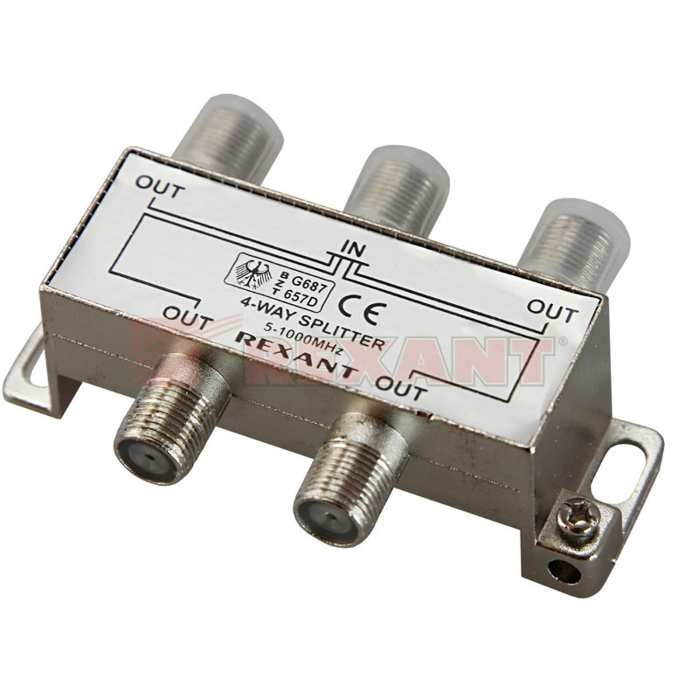 Телевизионный делитель это удобное средство для разделения сигнала на несколько равных частей. Антенные делители, также называемые телевизионные сплиттеры ,часто используются когда требуется подключить один телевизионный кабель, идущий от антенны, сразу к нескольким телевизорам. Особенно это актуально в многокомнатных квартирах или многокомнатных загородных домах. Делитель имеет один вход под F разъем и два выхода, также под F разъемы. Сигнал, подающийся на вход делителя, делится на две равные части и передается на выходы. Для подключения кабелей используются стандартные F-разъемы. Полоса пропускания делителя от 5 до 1000МГц, эти частоты используются для стандартного эфирного телевидения. Качественно изготовленный ТВ сплиттер REXANT долго и надежно прослужит в составе телевизионной системы, делая удобной эксплуатацию нескольких телевизоров.