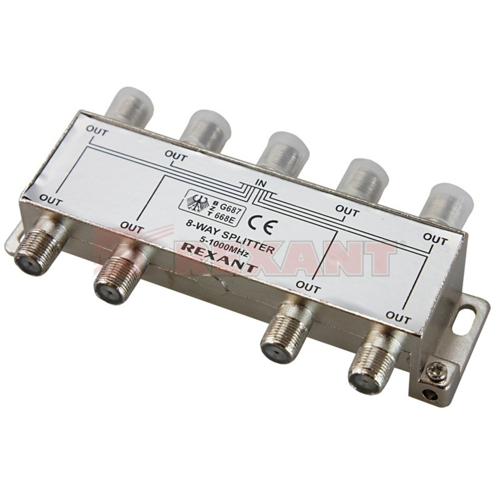 Антенный разветвитель Rexant 05-6005 ДЕЛИТЕЛЬ ТВ Краб х 8 под F разъём 5-1000 МГц (1 штука)