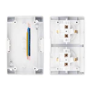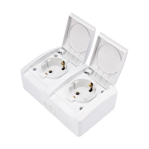 Накладной горизонтальный блок из двух розеток KRANZ предназначен для организации электроснабжения не только в сухом помещении, но и во влажной и пыльной среде. Благодаря лаконичной форме корпуса, он с легкостью впишется в любой интерьер. Защитная крышка на лицевой поверхности защищает розетку от попадания брызг воды. Отлично подойдет для дачи, ванной комнаты, бассейна и улицы, при наличии навеса, защищающего от прямого попадания влаги. Корпус механизма розетки выполнен из абсолютно негорючего материала – керамики. Блок прост и легок в установке. Технические характеристики: Напряжение: 220-250 В Частота тока: 50 Гц Номинальный ток: 16 А Степень защиты: IP54 Сечение проводников: 1,5-2,5 мм² Рабочая температура: -25...+40 °С
