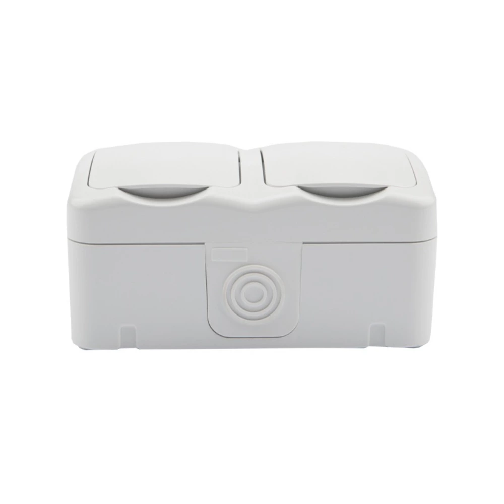 Блок из 2 розеток горизонтальный Kranz KR-78-0606 Mini OG открытой установки с заземлением, IP54 белый