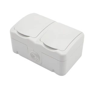 Накладной горизонтальный блок из двух розеток KRANZ предназначен для организации электроснабжения не только в сухом помещении, но и во влажной и пыльной среде. Благодаря лаконичной форме корпуса и классическому белому цвету, он с легкостью впишется в любой интерьер. Отлично подойдет для улицы, дачи, ванной комнаты и бассейна при наличии навеса, защищающего от прямого попадания влаги. Бок прост и легок в установке, не требует дополнительных элементов крепления. Технические характеристики: Напряжение: 220-250 В Частота тока: 50 Гц Номинальный ток: 16 А Степень защиты: IP54 Сечение проводников: 1,5-2,5 мм² Рабочая температура: -25...+40 °С