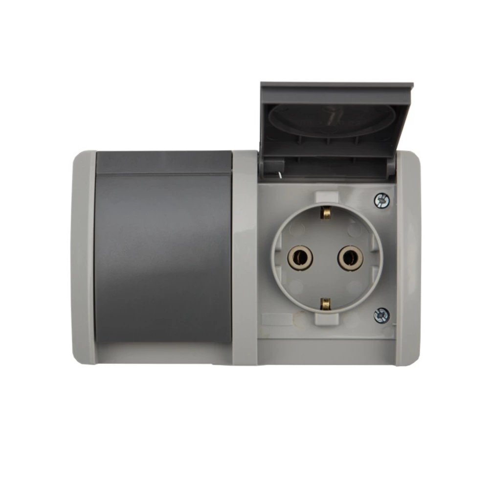 Блок из 2 розеток горизонтальный Kranz KR-78-0613 INDUSTRIAL с заземлением открытой установки, IP54, серый
