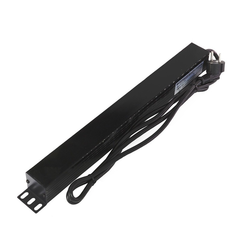 Блок розеток горизонтальный 19” предназначен для обеспечения электропитания активного сетевого оборудования в шкафах и стойках. Изготавливаются блоки розеток из высококачественных термостойких материалов и пластмасс. Блок розеток соответствует стандарту 19” (482,6 мм) и легко устанавливается в любой 19" конструктив. Характеристики: Ширина: 19" Стандарт розеток: Schuko Кол-во розеток: 8 Шнур питания: да Длинна шнура: 1,8 м Крышки гнезд: пластик Корпус панели электропитания: пластиковый Выключатель: да Защитная крышка от случайного выключения Напряжение питания: 220 В Максимальный ток нагрузки: 16 А Вес: 1,400 кг