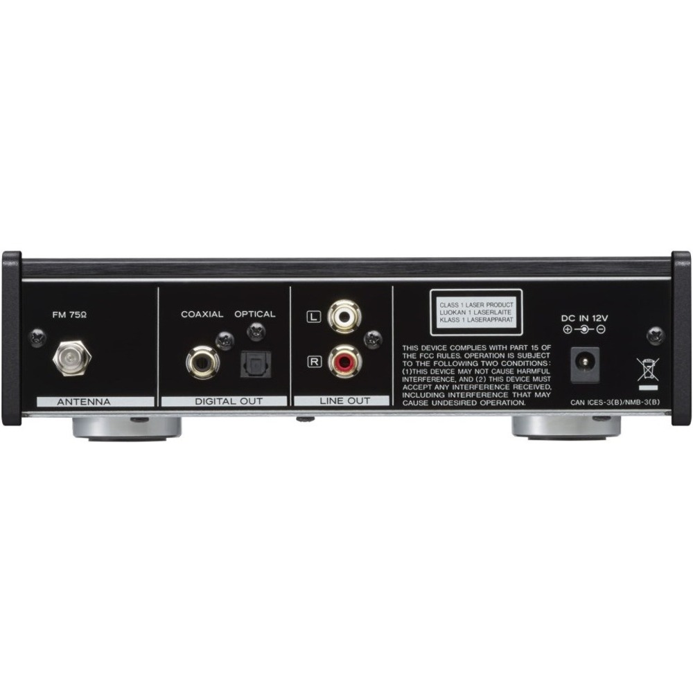 В правой части панели находятся 4 кнопки для управления воспроизведением, а также кнопки выброса диска и селектора источников. Слева имеется клавиша питания/standby с круговой подсветкой и USB-порт для флеш-накопителей (доступно проигрывание файлов в форматах WAV, AAC, MP3 и WMA). Жесткие диски HDD не поддерживаются. Для цифро-аналогового конвертирования применяется чип Burr-Brown PCM5142 компании Texas Instruments, благодаря которому удается получить насыщенный и хорошо сбалансированный звук. Встроенный FM-тюнер позволяет запомнить 20 пресетов на 20 радиостанций.