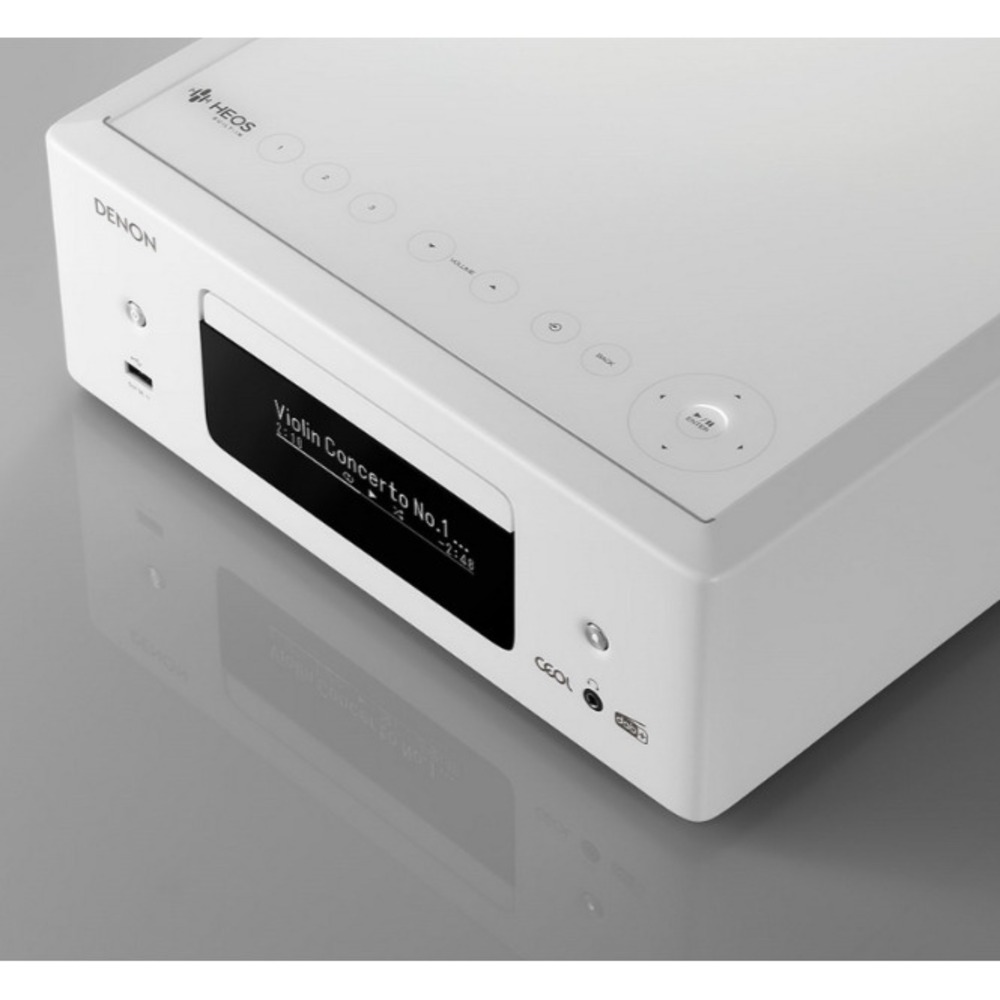 Главное новшество в модели CD ресивера Denon RCD N12DAB – это HDMI ARC вход для подключения телевизора и Phono вход для подключения винилового проигрывателя, при это в сравнении с моделью N10 был удален один оптический вход. Передняя панель центрального блока оформлена в минималистском стиле, и большую часть ее пространства занимает крупный, легко читаемый дисплей. Основные органы управления системой – сенсорные кнопки - находятся на верхней панели.