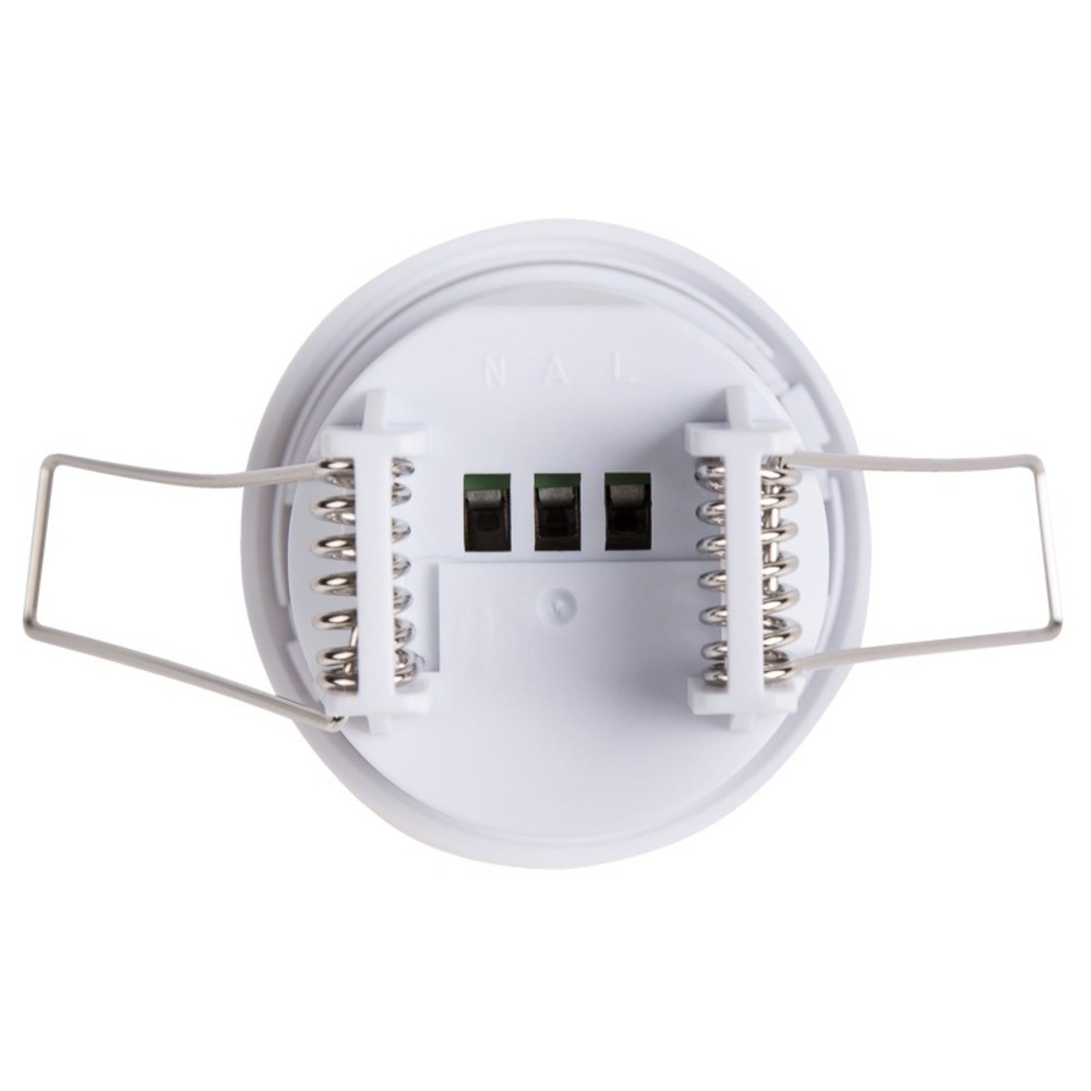 Датчики предназначены для автоматического включения и выключения нагрузки в заданном интервале времени, в зависимости от наличия движущихся объектов в зоне обнаружения датчика и уровня освещенности. Принцип работы инфракрасных датчиков движения заключается в обнаружении изменений инфракрасного (теплового) излучения окружающих объектов. Каждый объект, имеющий температуру, испускает инфракрасное излучение, которое через систему линз или специальных вогнутых сегментированных зеркал попадает на расположенный внутри датчика движения чувствительный сенсор, регистрирующий это. Встраивается в подвесной потолок с диаметром установочного отверстия 40 мм. Визуально датчик гармонично встраивается в обстановку и не выделяется на потолке. Угол обзора: 360° Напряжение: 220-240 В Мощность: 500 Вт Порог освещенности: 10-2000 ЛК Дальность: до 6 м Выдержка включения: 10-420 сек Диапазон рабочих температур: –25...+40 °С Степень защиты : IP20