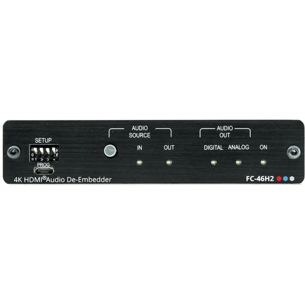 FC-46H2 – устройство для извлечения аудиосигнала из цифрового сигнала HDMI (деэмбеддер). Прибор выделяет аудиосигнал из входного сигнала HDMI разрешением до 4K/60 (4:4:4) с HDR. Полоса пропускания 600 МГц. Сигнал выдается одновременно на выходы S/PDIF и стереоаудио.