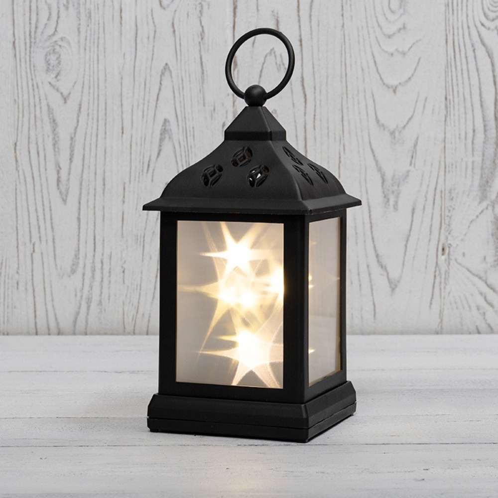 Декоративный фонарь с эффектом мерцания — оригинальное и, главное, безопасное украшение интерьера, которое имитирует веселую россыпь сверкающих огней, заключенных в стеклянную колбу. Корпус черного цвета выполнен в стиле старинного подвесного фонаря. За подсветку отвечает 10 диодов. Современные светодиоды не нагреваются, экономно расходуют заряд 3 батареек типа ААА и стабильно работают при температуре в помещениях с естетсвенной влажностью. На корпусе предусмотрена кнопка ON/OFF.