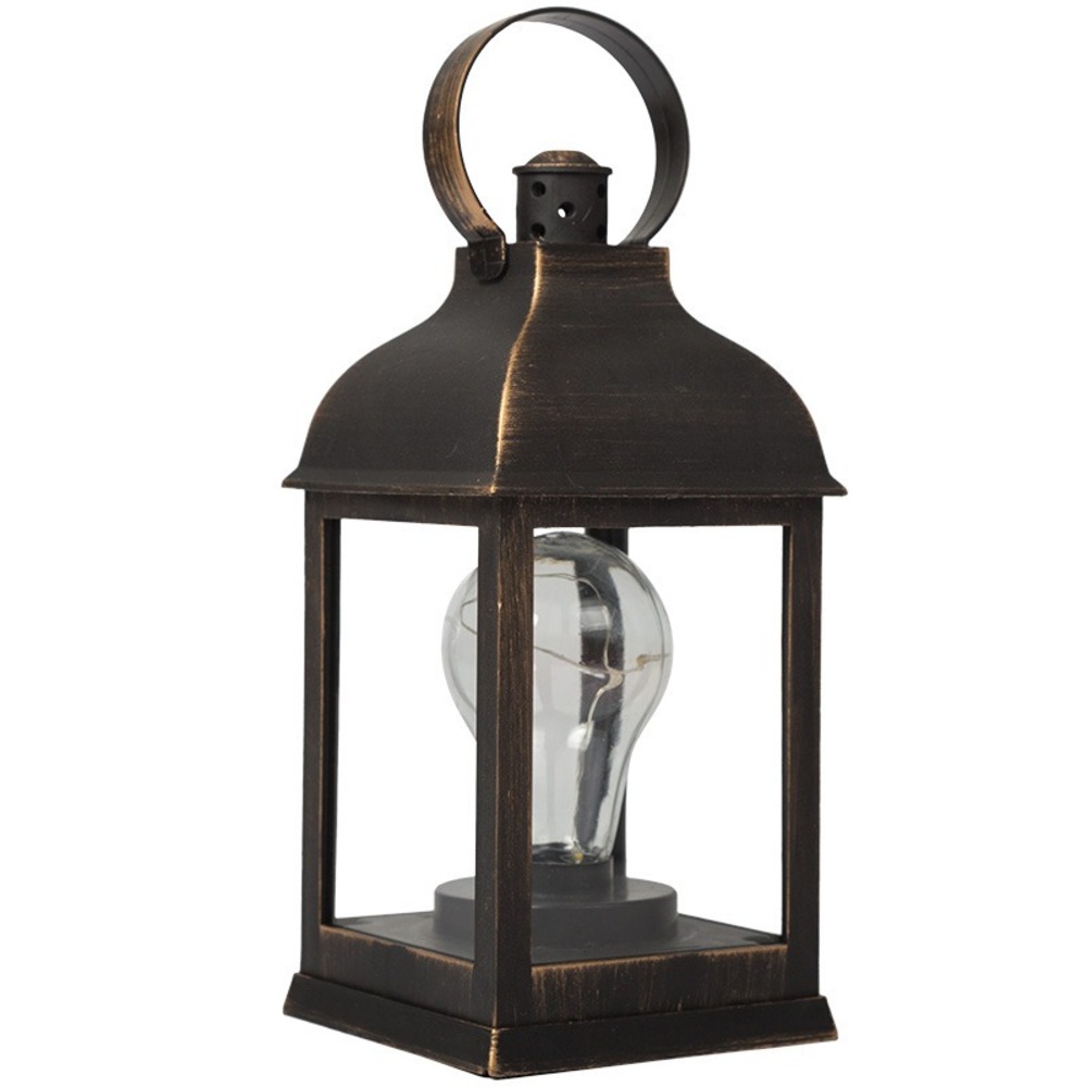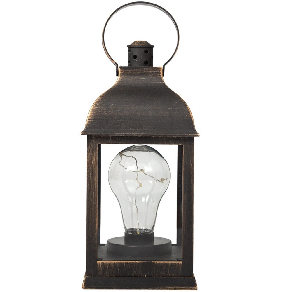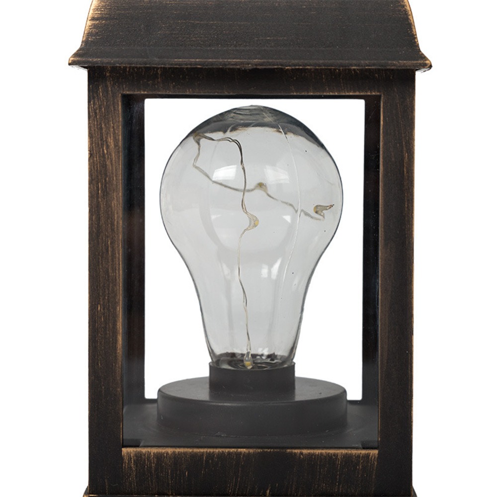 Декоративный фонарь с лампочкой — стильное, оригинальное интерьерное украшение, которое выгодно подчеркнет уникальный стиль обстановки и создаст уют. В бронзовом корпусе находится декоративный элемент в виде лампы накаливания, но вместо вольфрамовой спирали за подсветку отвечают светодиоды, излучающие белый свет теплого оттенка. Светодиоды получает питание от 3 батареек типа ААА и экономно расходуют заряд. Фонарь имитирует работу настоящей лампочки, даря тепло и комфорт окружающим.