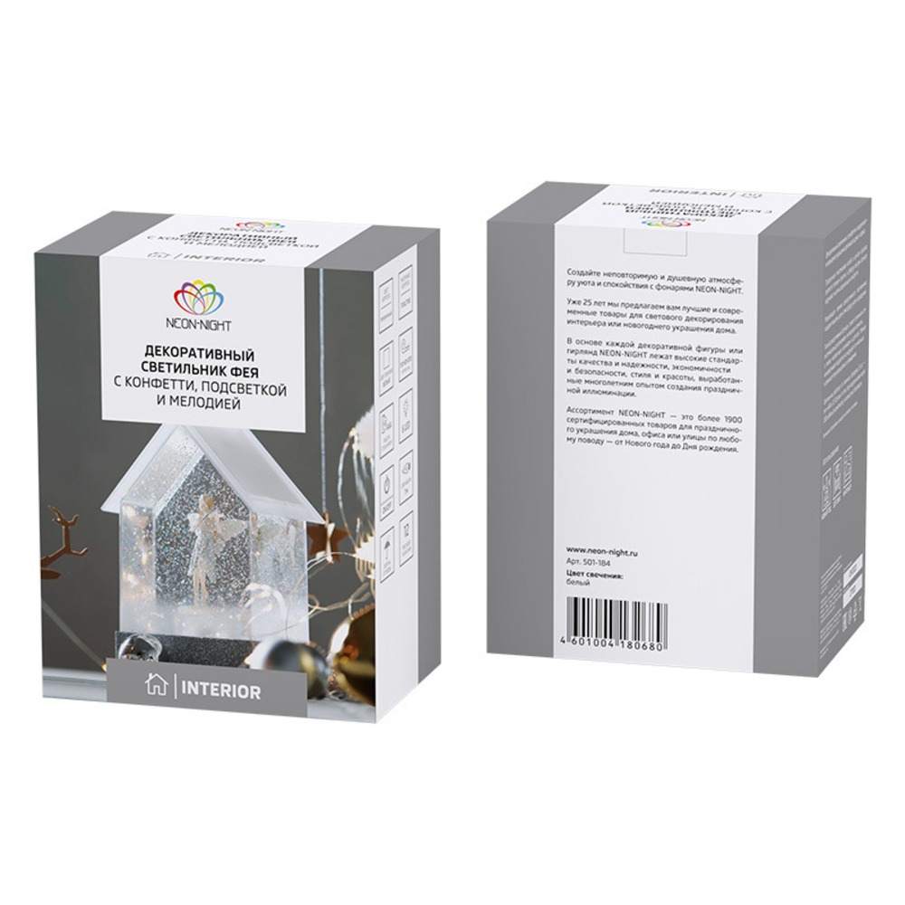 Декоративный светильник «Фея» NEON-NIGHT с приятным белым свечением придаст уют и привнесет в интерьер тепло, свет и комфорт. Светильник с фигуркой сказочной феи станет отличным украшением детской, фотостудии или подарком на день рождения. Фонарь наполнен специальной жидкостью и конфетти, которые при включении начинают циркулировать, создавая атмосферу праздника и уюта. Оригинальная успокаивающая мелодия поможет отвлечься от потока мыслей, расслабиться после насыщенного дня и подготовиться ко сну. Общая высота светильника 20 см. Питание от 3 батареек типа AА (батарейки в комплект не входят) позволяет устанавливать фонарь на любой горизонтальной поверхности без необходимости поиска ближайшей розетки. Возможна работа от USB (кабель входит в комплект).